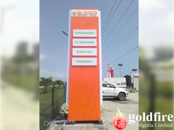 Blenco Supermarket Pylon signage produced and installed by Goldfire Nigeria Limited.