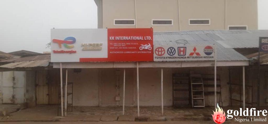Before and after pictures for our installation of the Total energies wall signage at kk international shop, Kaduna