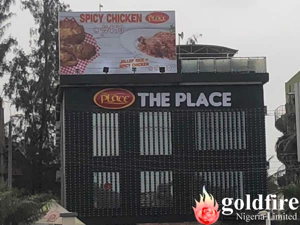 illuminated logo and lettering – The Place, Ikeja produced and installed by Goldfire Nigeria Limited.